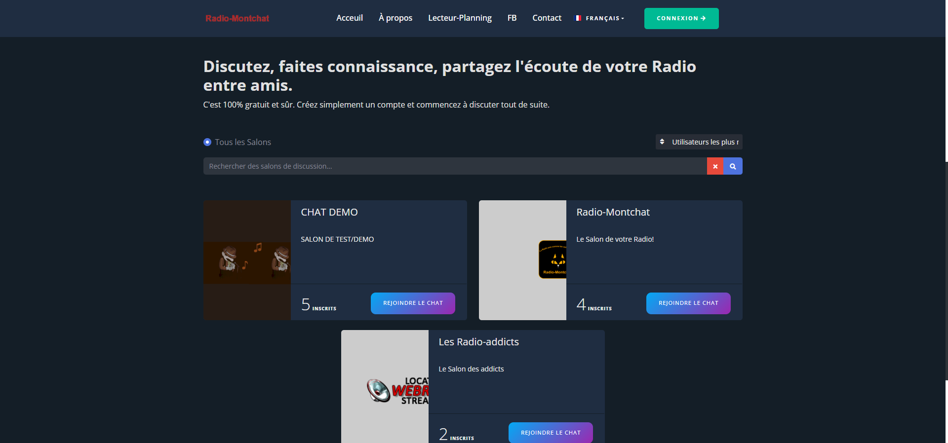 ChatRoomNet, c’est bien plus qu’un simple service d’hébergement : c’est une solution clé en main qui intègre un système de chat privé et des salons de discussion de groupe que vous pouvez créer sans limite, adaptés à votre site web, application mobile ou web app. Disponible en français (et aussi en anglais), ChatRoomNet séduit par son design moderne, convivial et responsive. Transformez votre site en véritable plateforme sociale et communautaire, riche en fonctionnalités et simple d’utilisation.