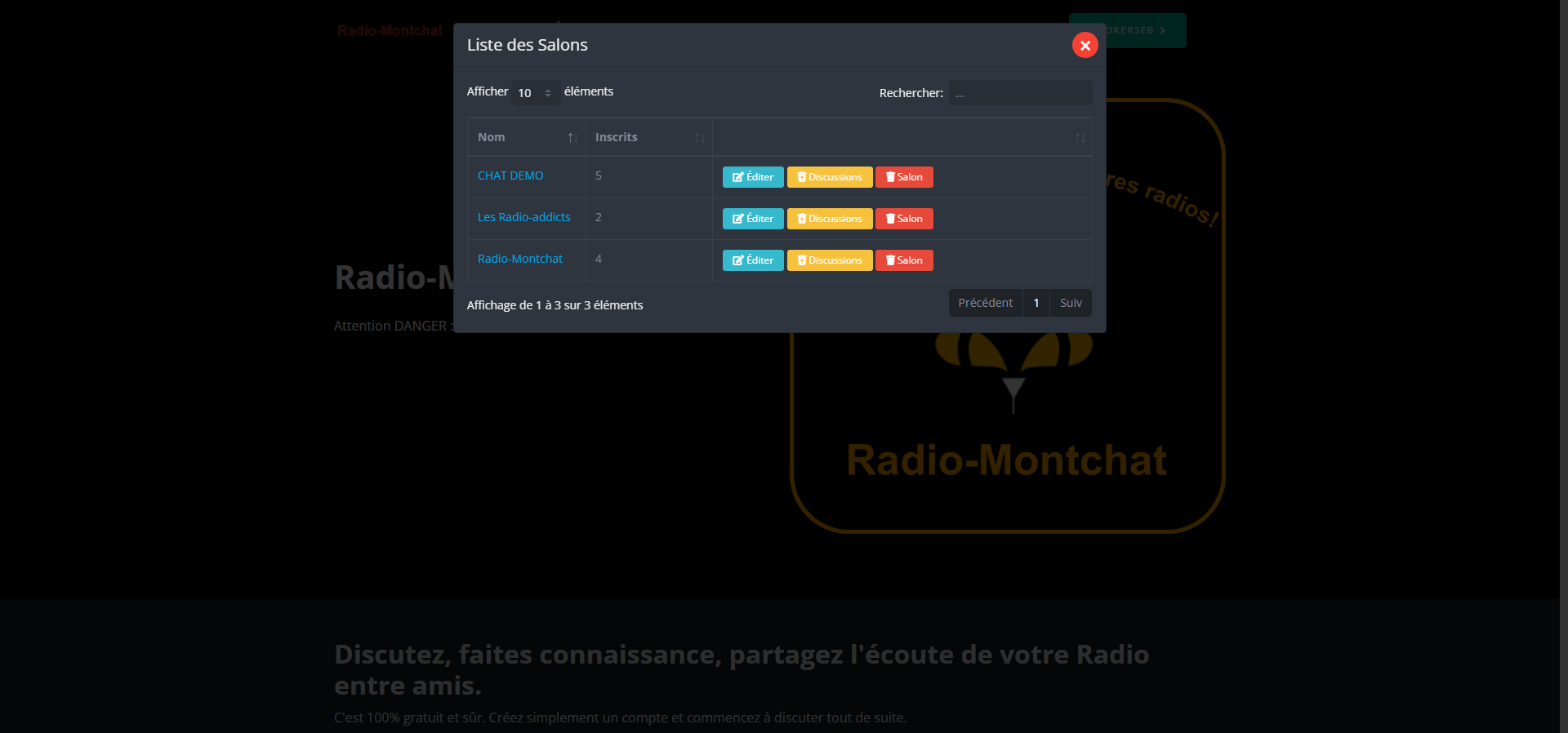 Page d'accueil personnalisable pour présenter vos salons de chat